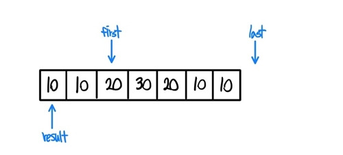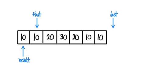 그렇게 first와 last iterator를 받고 나서 unique가 작동되는데 작동원리는 아래와 같다.