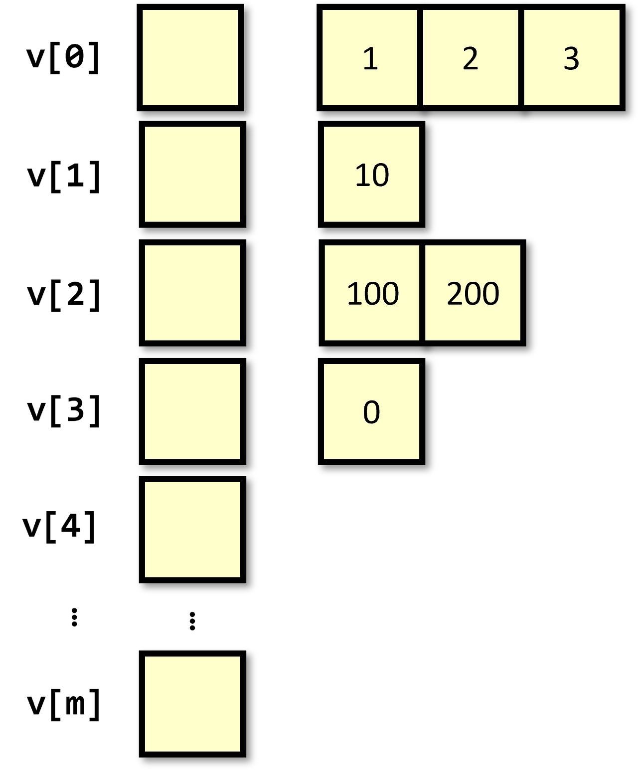 단, 원소를 삽입하기 전에 v [i][j]를 이용하여 원소에 접근할 수 없다, 행 벡터만 선언된 것이고 각 행의 열 벡터는 아무 값도 들어있지 않기 때문입니다.