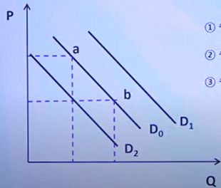 1. 수요가 a에서 b점으로 이동한다.